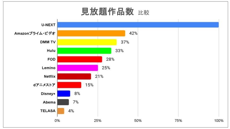 次に、サービス選びでもっとも注目される「作品数」と「ジャンルの充実度」を見ていきましょう。