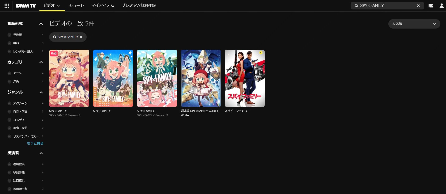 そして、以下が「DMM TV」のアニメ「スパイファミリー」のラインナップとなります。