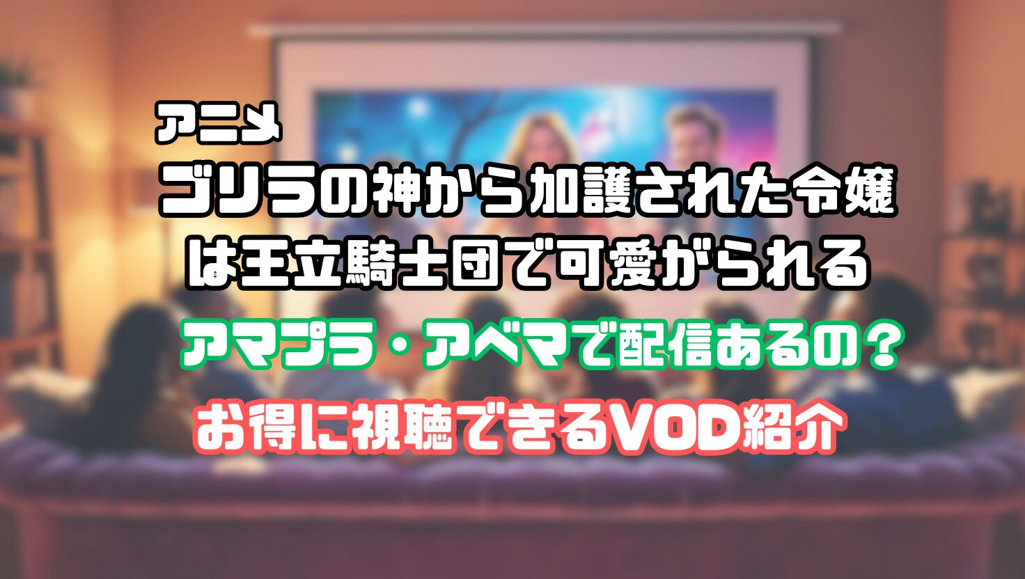 この記事では、ABEMA(アベマ)・Amazonプライムビデオでアニメ「ゴリラの神から加護された令嬢は王立騎士団で可愛がられる」が視聴できるのかをご紹介。