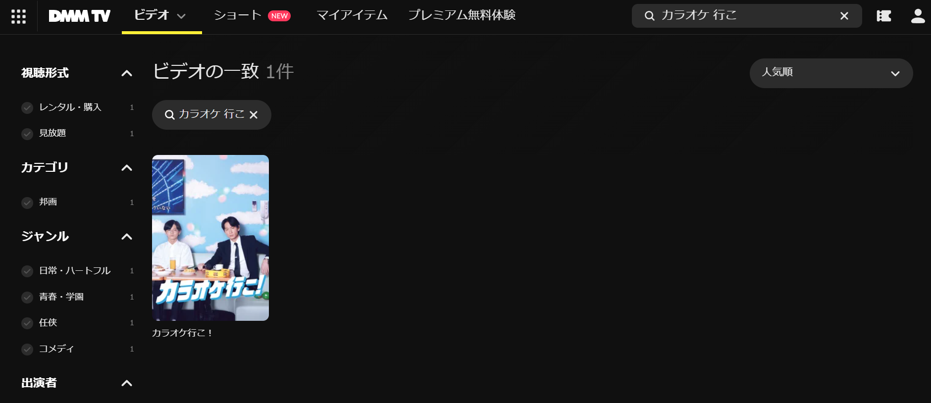 そして、以下が「DMM TV」の映画『カラオケ行こ!』のラインナップとなります。