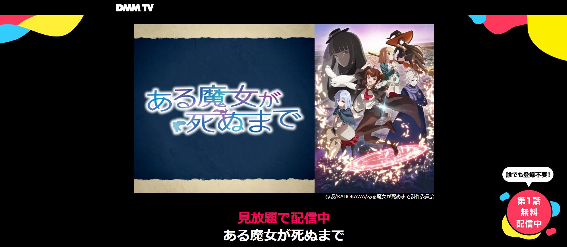 「DMM TV」はアニメ「ある魔女が死ぬまで」の見放題配信あり、更新日は毎週月曜日