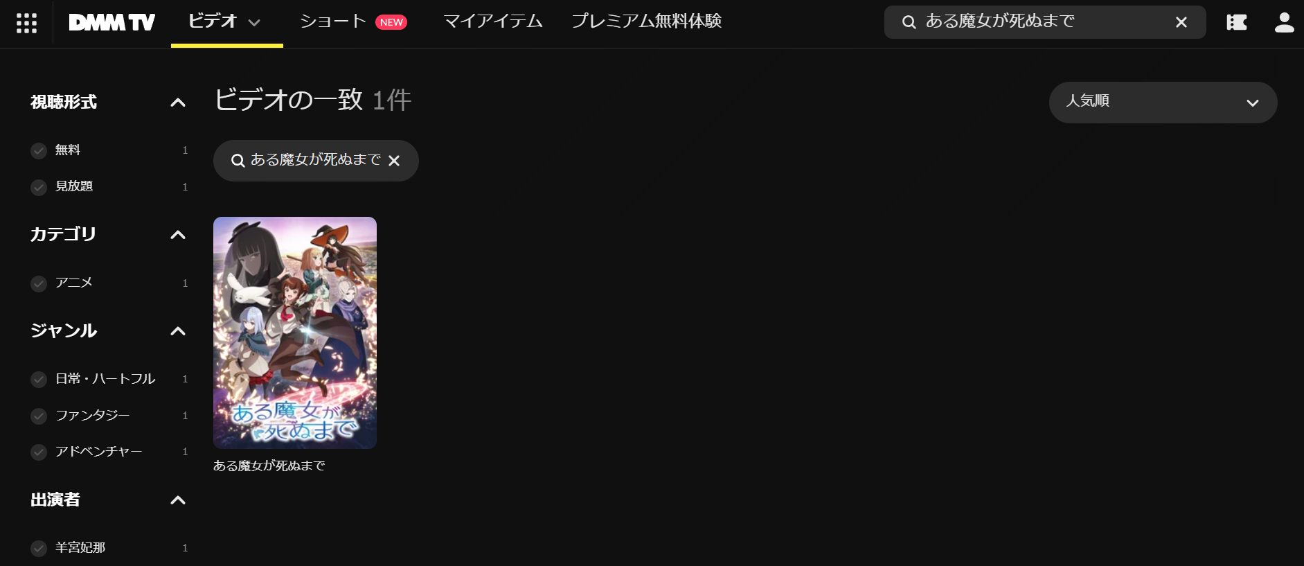 ≪DMM TVの「ある魔女が死ぬまで」配信状況≫