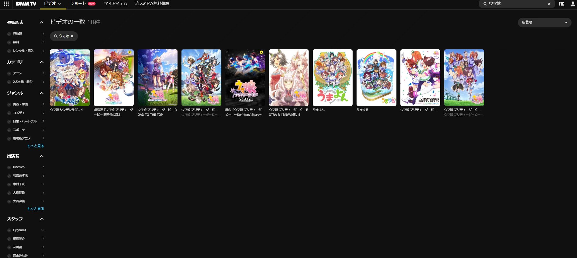 そして、以下が「DMM TV」のアニメ「ウマ娘」シリーズ のラインナップとなります。