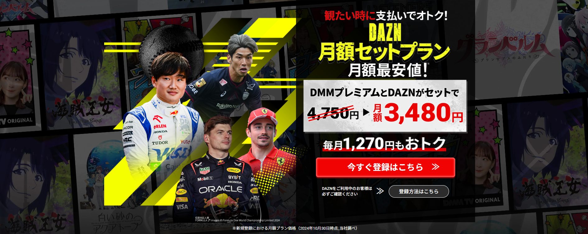 DMM×DAZNホーダイはDAZN スタンダードとDMMプレミアムがセットになって通常価格より1,270円(税込)も安くなるプランです。
