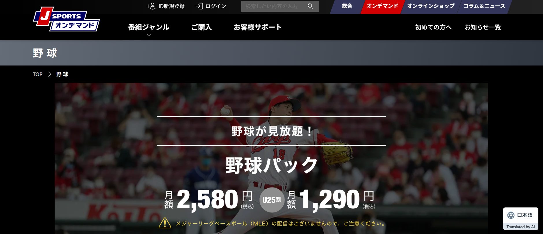 J SPORTS オンデマンド-野球パック-のサービス内容