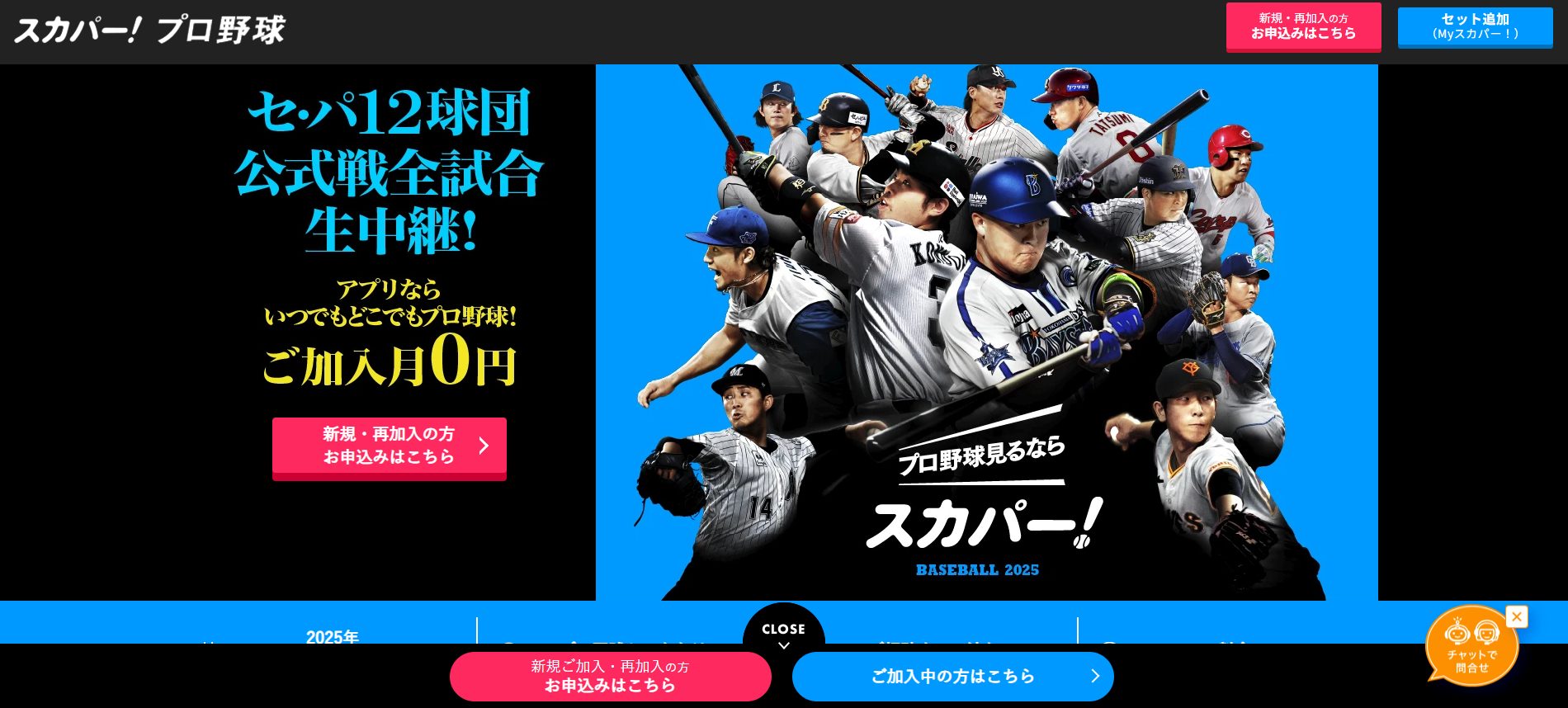 スカパー!プロ野球セットは、セ・パ両リーグ12球団の公式戦をすべて視聴できるセットサービスです。
