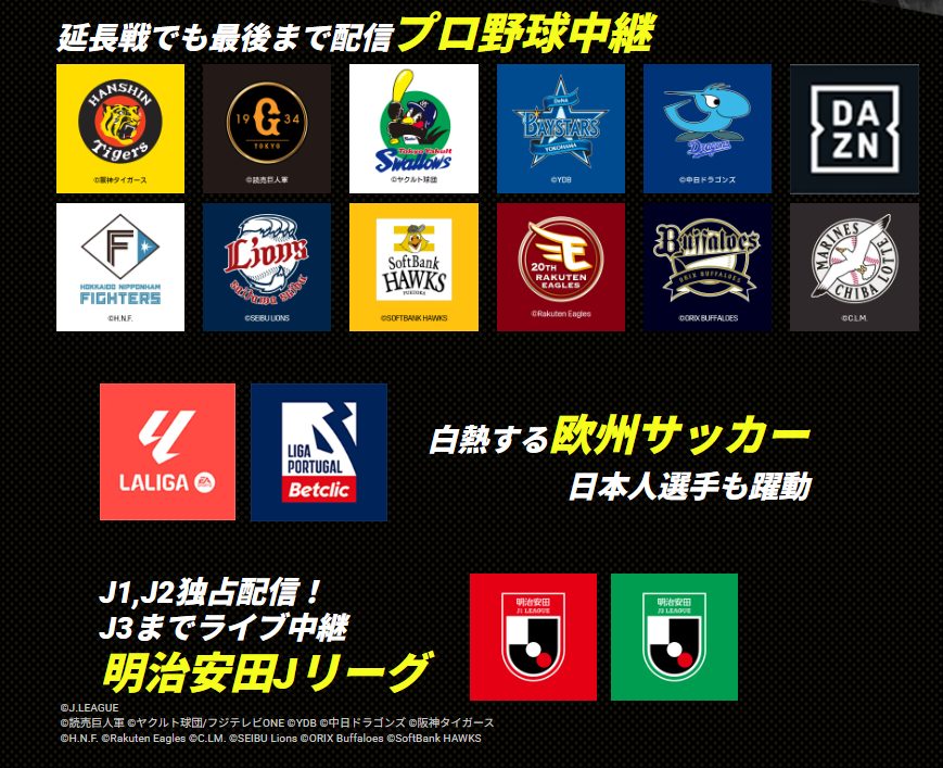 - プロ野球、Jリーグ、F1、ボクシングなどスポーツ配信内容はDAZNスタンダードと全く同じ!