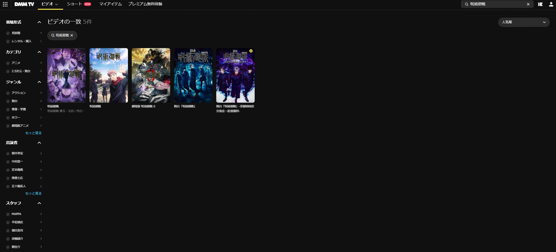 そして、以下がDMM TVの『呪術廻戦』のラインナップとなります。