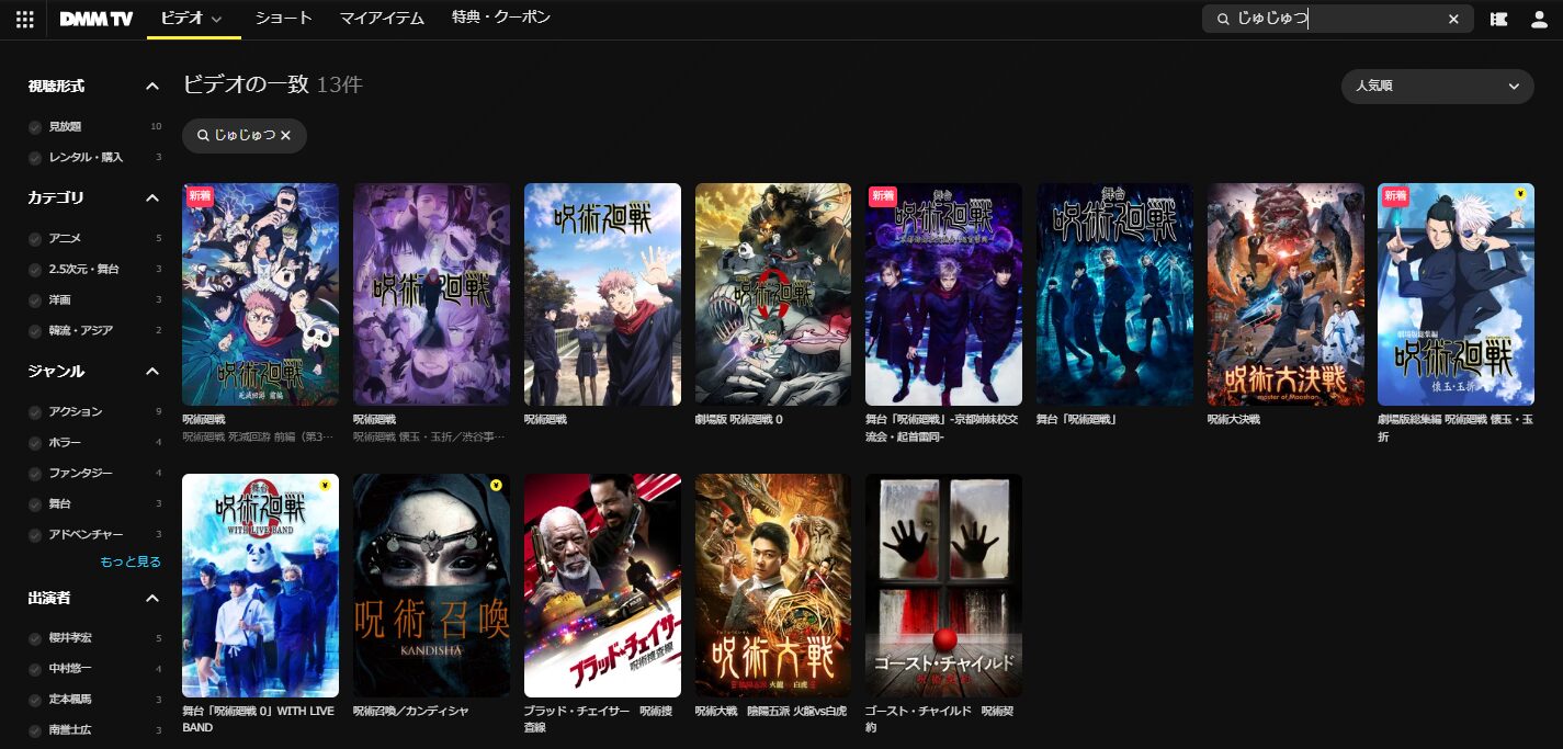 そして、以下がDMM TVの『呪術廻戦』のラインナップとなります。