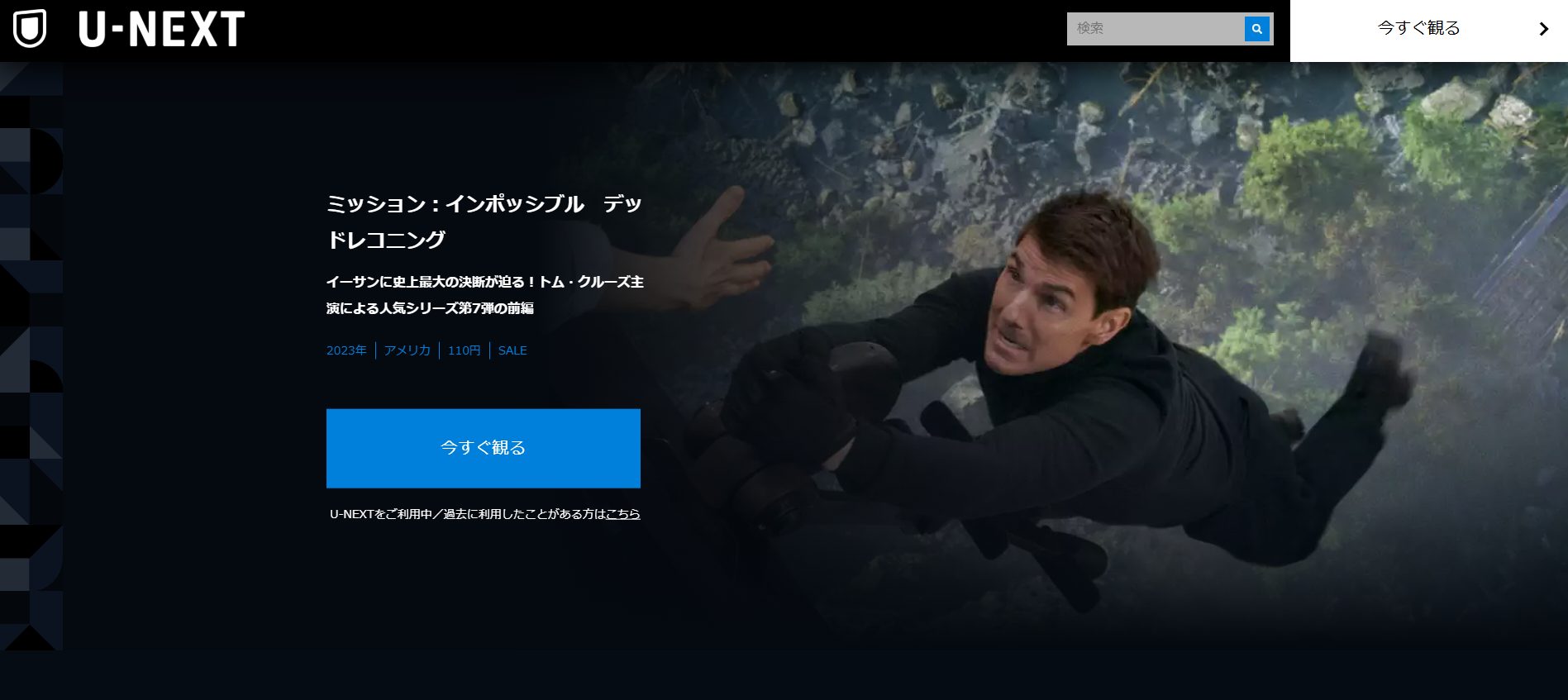 「U-NEXT」は映画『ミッションインポッシブル』シリーズの全7作品配信あり、しかも無料で見れる