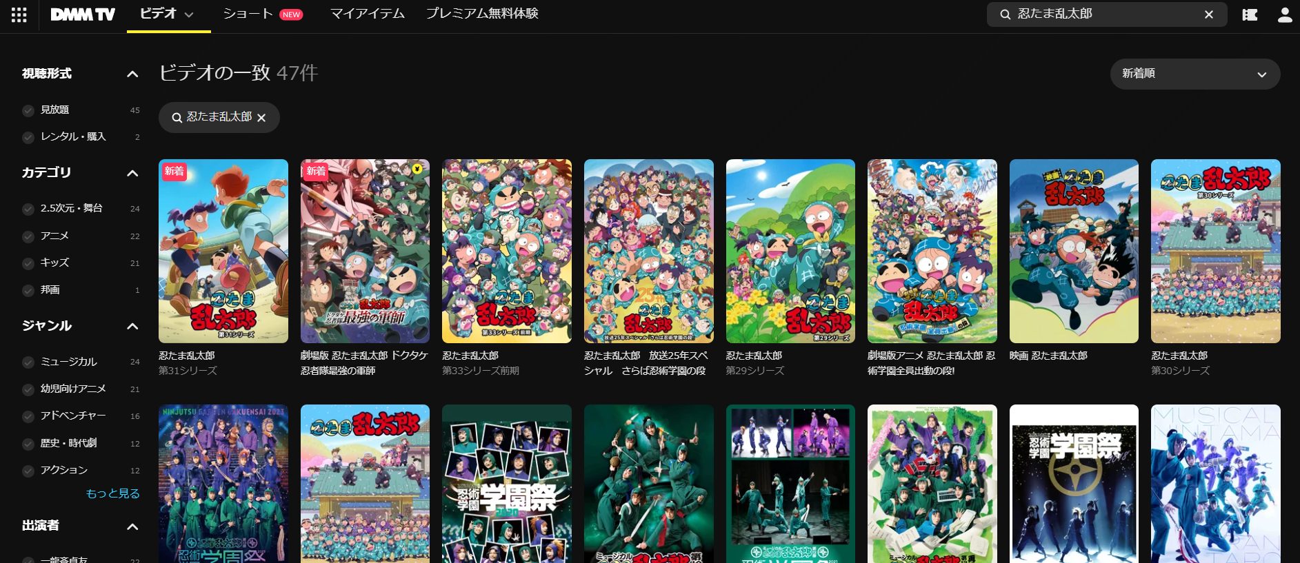 そして、以下が「DMM TV」の「忍たま乱太郎」シリーズのラインナップとなります。