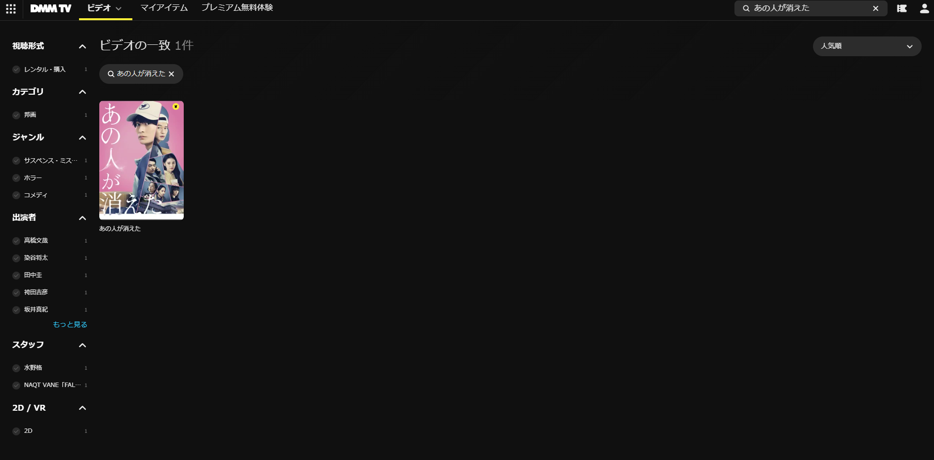 ≪DMM TVの映画「あの人が消えた」配信状況≫